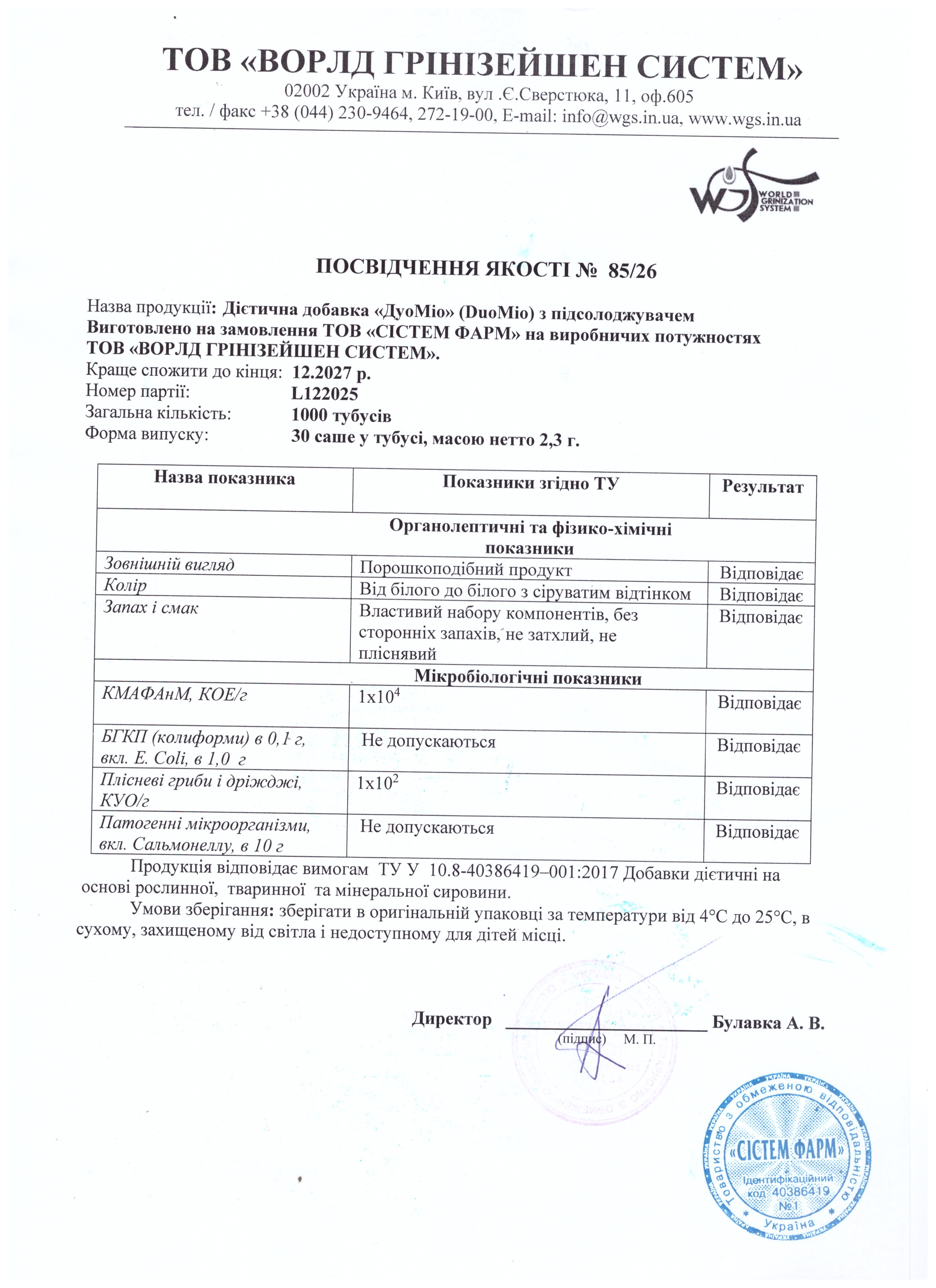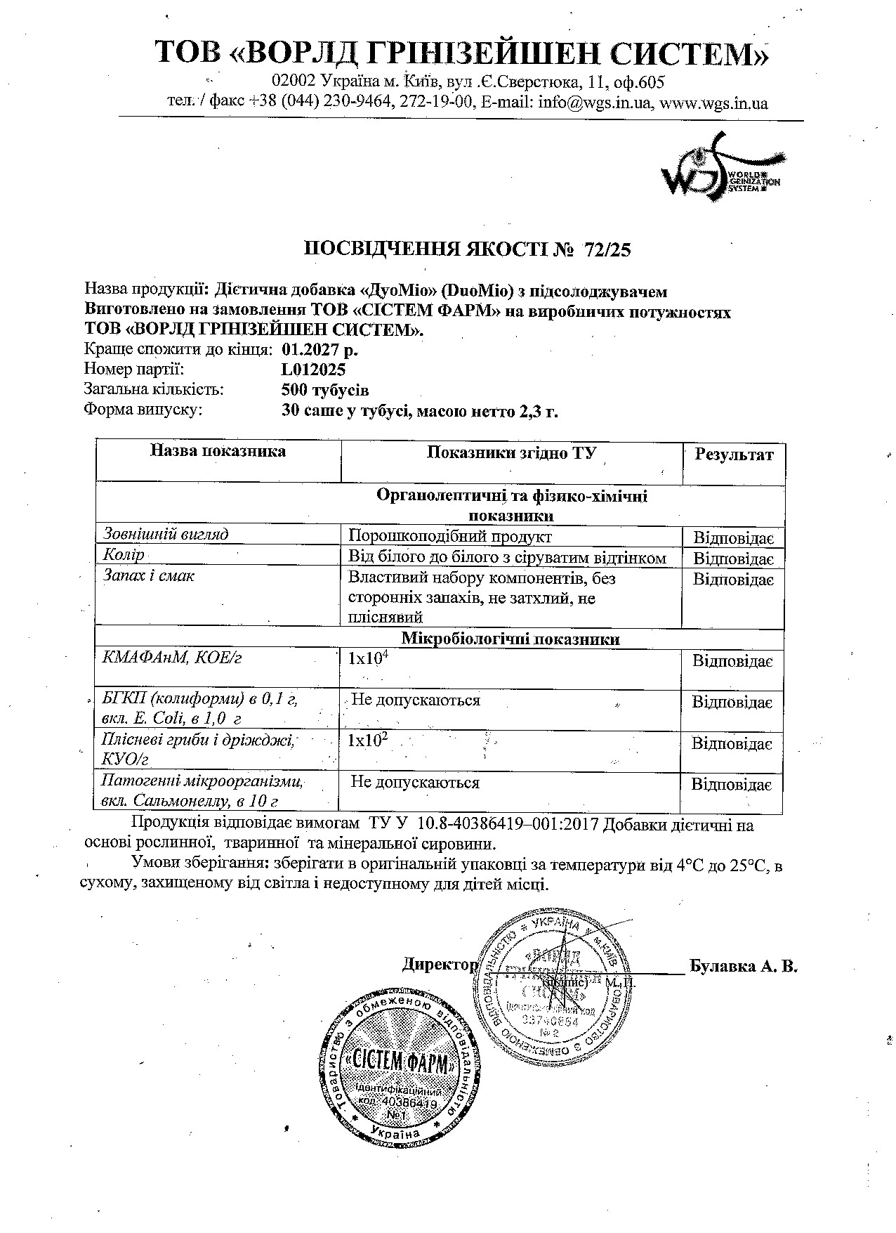 ТОВ «СІСТЕМ ФАРМ», 08300, Київська обл., м. Бориспіль, вул. Шевченка, 100/5, тел: +38 097 073 00 48.